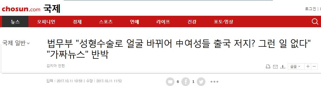 【环球网综合报道】近日,有媒体报道称,3名访韩进行“整形观光”的中国女性,因护照照片和实际面部有很大差别为由,在韩国机场被保留出国许可。不过,韩媒11日援引韩国法务部消息称,这是假消息!