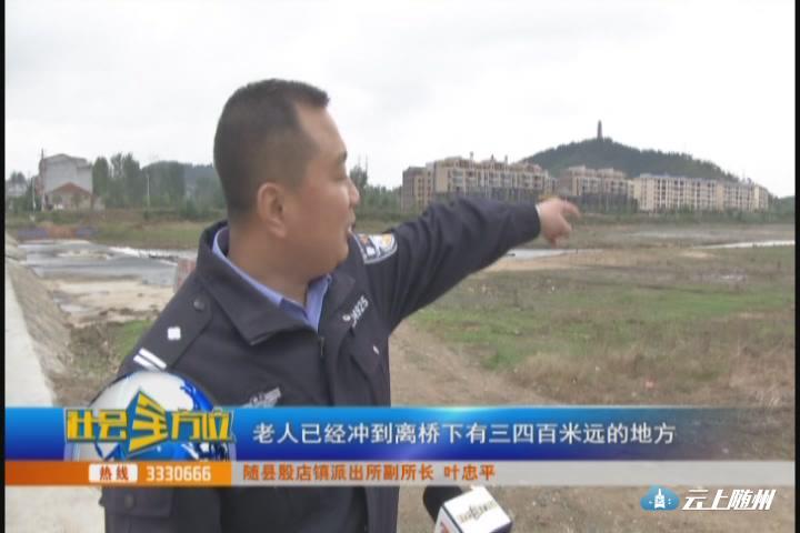【采访】随县殷店镇派出所副所长 叶忠平:水已经到这里了,老人已经冲到离桥下有三四百米远的地方,情况紧急,我们直接沿近路、小路跑步过去,我们所的徐省警官脱下警服,穿上救生衣,带上救生圈,游到老人身边,把救生圈套到老人身上,把老人救到旁边以后,老人已经昏迷不醒,我们协力把老人抬上警车,送到卫生院进行抢救。