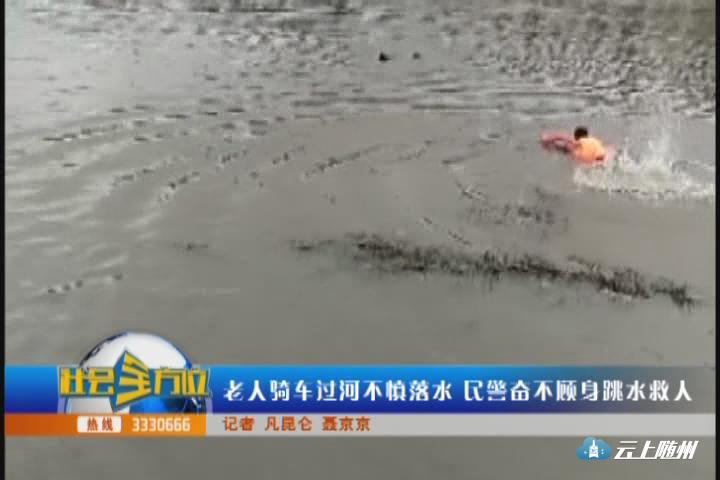 当地派出所接到报警后,迅速赶到现场。根据目击者拍摄的视频显示,当时河水非常浑浊、水流湍急,一名身穿救身衣的民警正在向河中间的落水老人奋力游去,此时老人只有头露出水面,两只脚扑腾了两下,显得有些体力不支,民警在靠近老人后,把救生圈套在老人身上,再慢慢把老人拉向岸边。