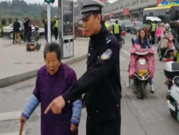 随州交警三大队民警余建廷说:“我当时看见她过马路时候用车子比较多,早高峰,她不知道怎么走,很茫然,又拄个拐杖,我问了一下她已经78岁了,就帮她一下,安全的过这个十字路口。”