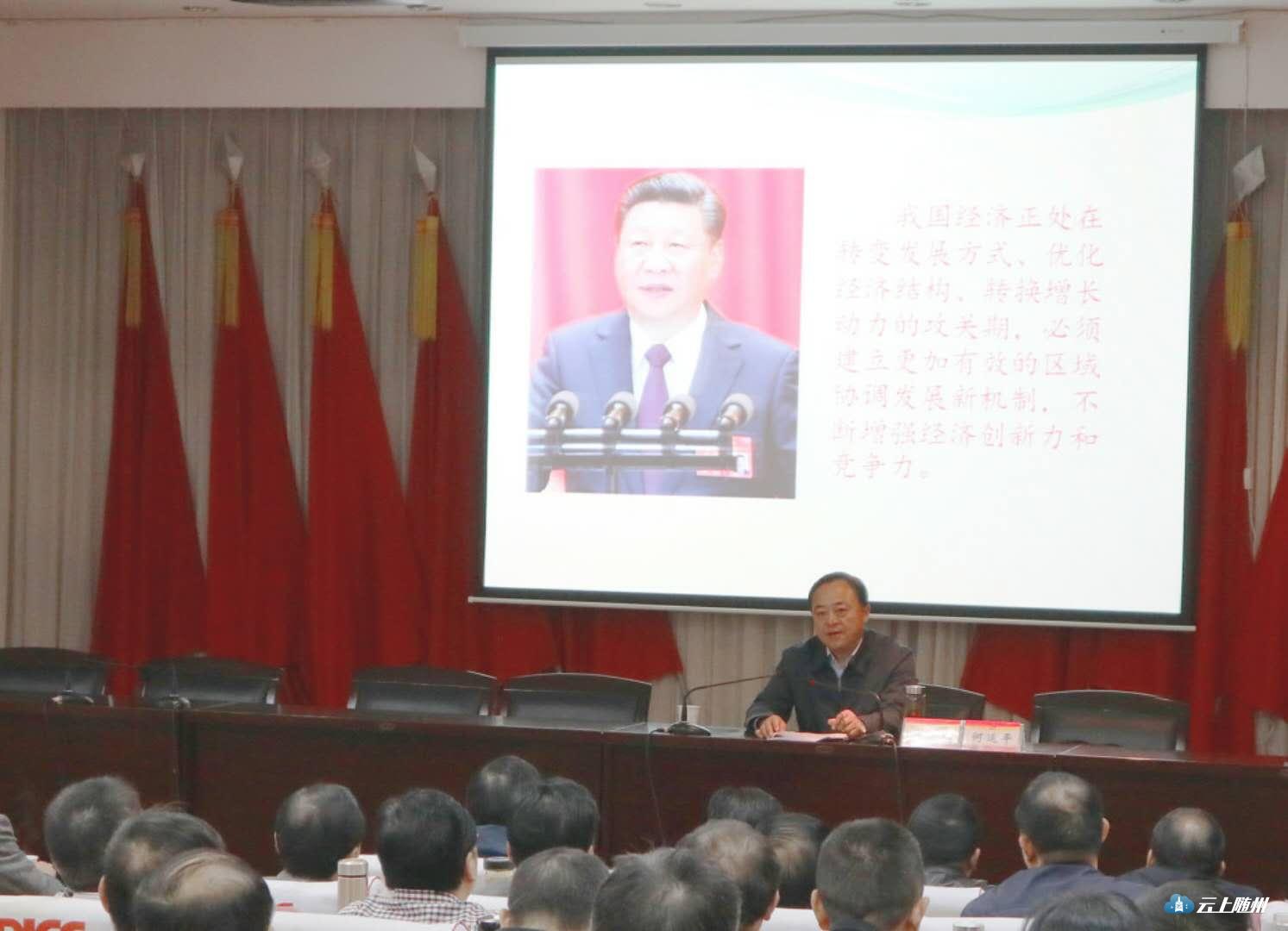 何运平以《主动担当,积极作为,为建成特色产业增长极贡献曾都力量》为主题,从助推特色产业增长极的思考与定位、探索与实践、收获与感悟三个方面,用详实的数据、丰富的事例,阐述了曾都在随州建设特色产业增长极的光荣使命中体现的担当与作为。