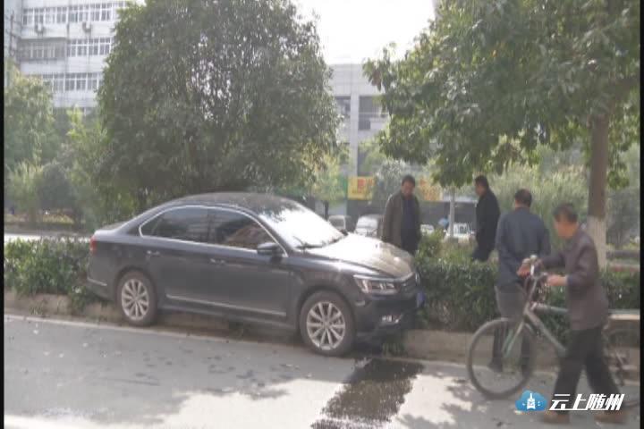【采访】市民:我只听到砰的一声,这个车就在这里了,它应该是从花坛里冲过来的。从那边一下子就冲过来了,看的不是很清楚,我只看到从花坛那边过来的。