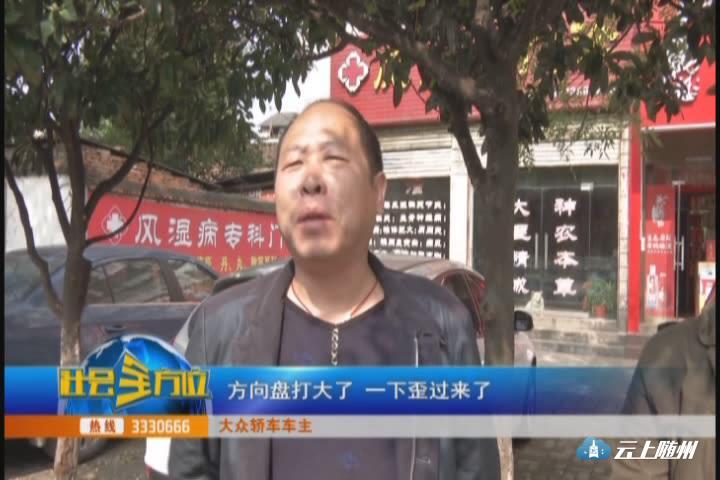 【采访】大众轿车车主:正在走得时候突然把我们挤过来了,它在我们前面飞过来了,我在后面停在那,他刚刚说的意思是,想超过去,方向盘打大了。