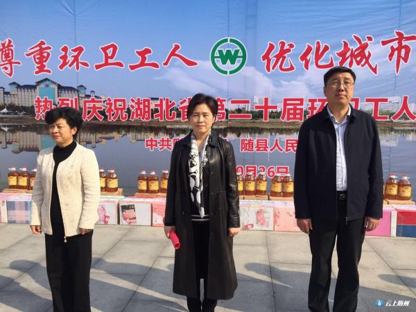 10月26日上午,随县举办庆祝湖北省第二十届环卫工人节活动,为日夜奋战在一线的环卫工人送来慰问品和慰问金。随县城区70名环卫工人和全体城管队员以及爱心企业负责人在新厉山广场隆重集会,共同庆祝节日。县委书记毕道丽,县长陈兴旺,县人大常委会主任余先珍,县政协主席金安翔等县“四大家”领导参加这次活动。