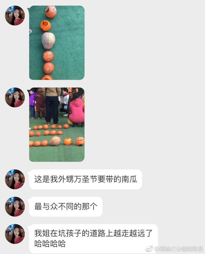 据爆料人@炜炜哒1表示,这是自己姐姐的趣事。“我的外甥一直问,为啥我的南瓜和他们的不一样哈哈哈。”