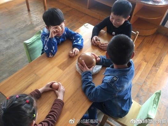 立春,幼儿园让娃带鸡蛋,大家碰蛋玩,结果……娃带了个坚硬不比的“鸵鸟蛋”,这是作弊啊!