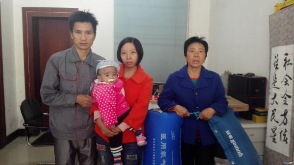 小女孩现在靠随身携带的氧气生存。 图为(爸爸,妈妈和奶奶)