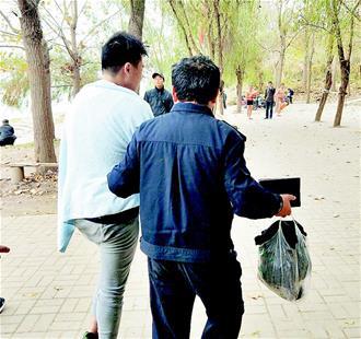 图为:轻生小伙被民警带走