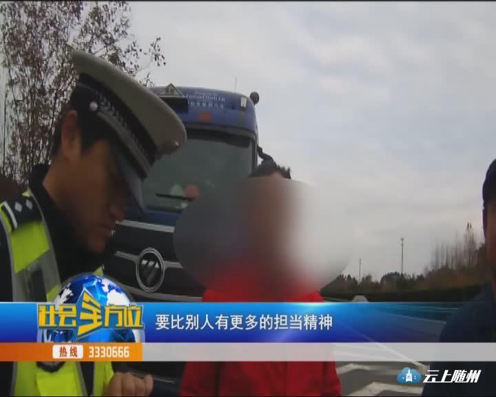 【同期声】你作为货车司机,本身运输的又是危化品,要比别人有更多的担当精神,高速公路上违停,高速公路上倒车,都属于严重的交通违法行为,极易发生交通事故,具有很大的事故隐患。