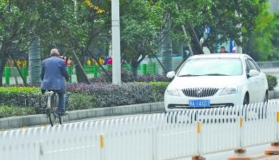 昨天下午,一个人骑着自行车在汉口建设大道逆行记者肖僖 摄