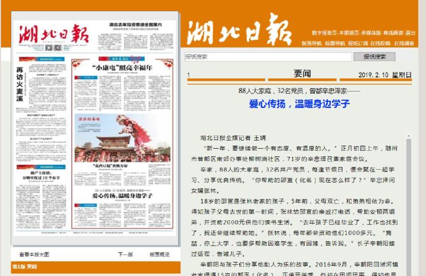 湖北日报点赞!88人大家庭,32名党员,曾都辛忠泽家—— 爱心传扬,温暖身边学子