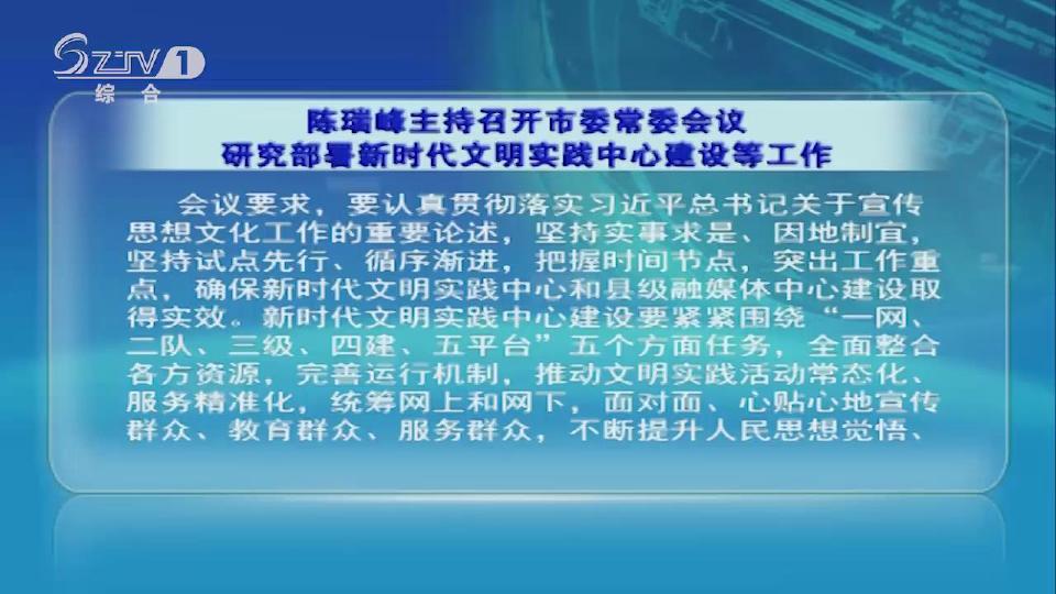 V视|陈瑞峰主持召开市委常委会议 研究部署新时代文明实践中心建设等工作