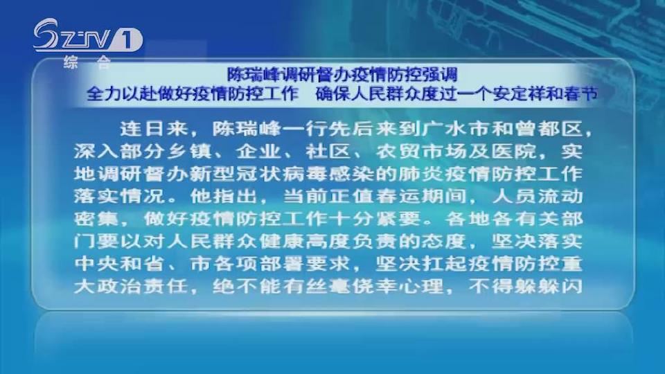 V视| 陈瑞峰调研督办疫情防控强调 全力以赴做好疫情防控工作 确保人民群众度过一个安定祥和春节