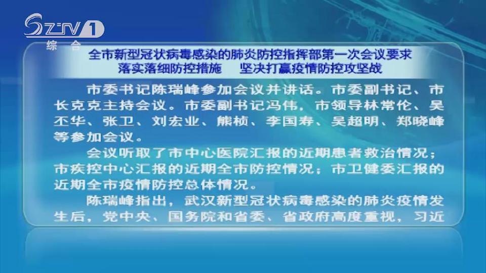 V视| 全市新型冠状病毒感染的肺炎防控指挥部第一次会议要求 落实落细防控措施 坚决打赢疫情防控攻坚战