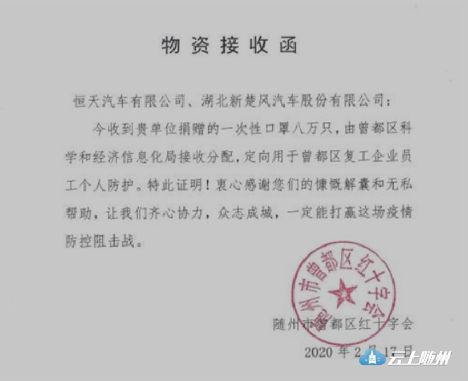 抗击疫情!随州市房地产业协会在行动 ,湖北大地集团捐赠50万元!