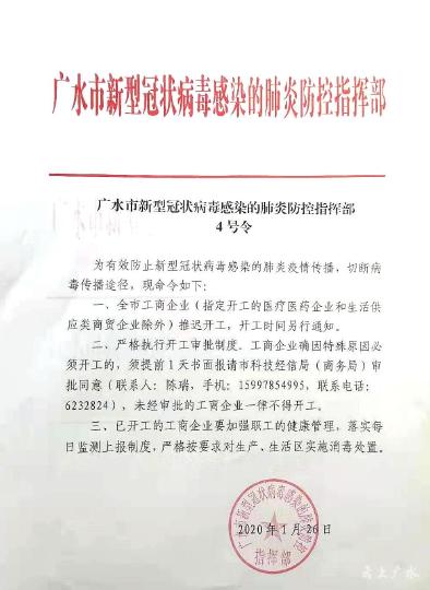 随州市新型冠状病毒感染的肺炎 防控工作指挥部办公室通告(第1号)