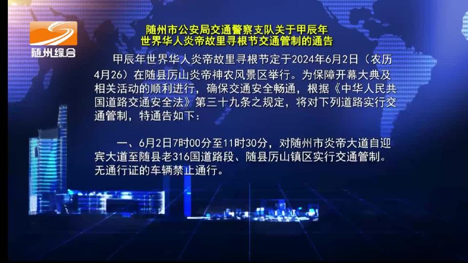 V视| 随州市公安局交通警察支队关于甲辰年世界华人炎帝故里寻根节交通管制的通告